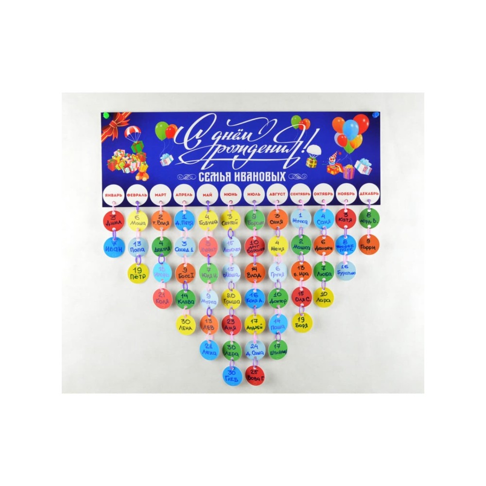Именной настенный календарь "Дней Рождений" с ВАШЕЙ ФАМИЛИЕЙ, названием компании, логотипом или другой информацией на заказ от 1 штуки!
