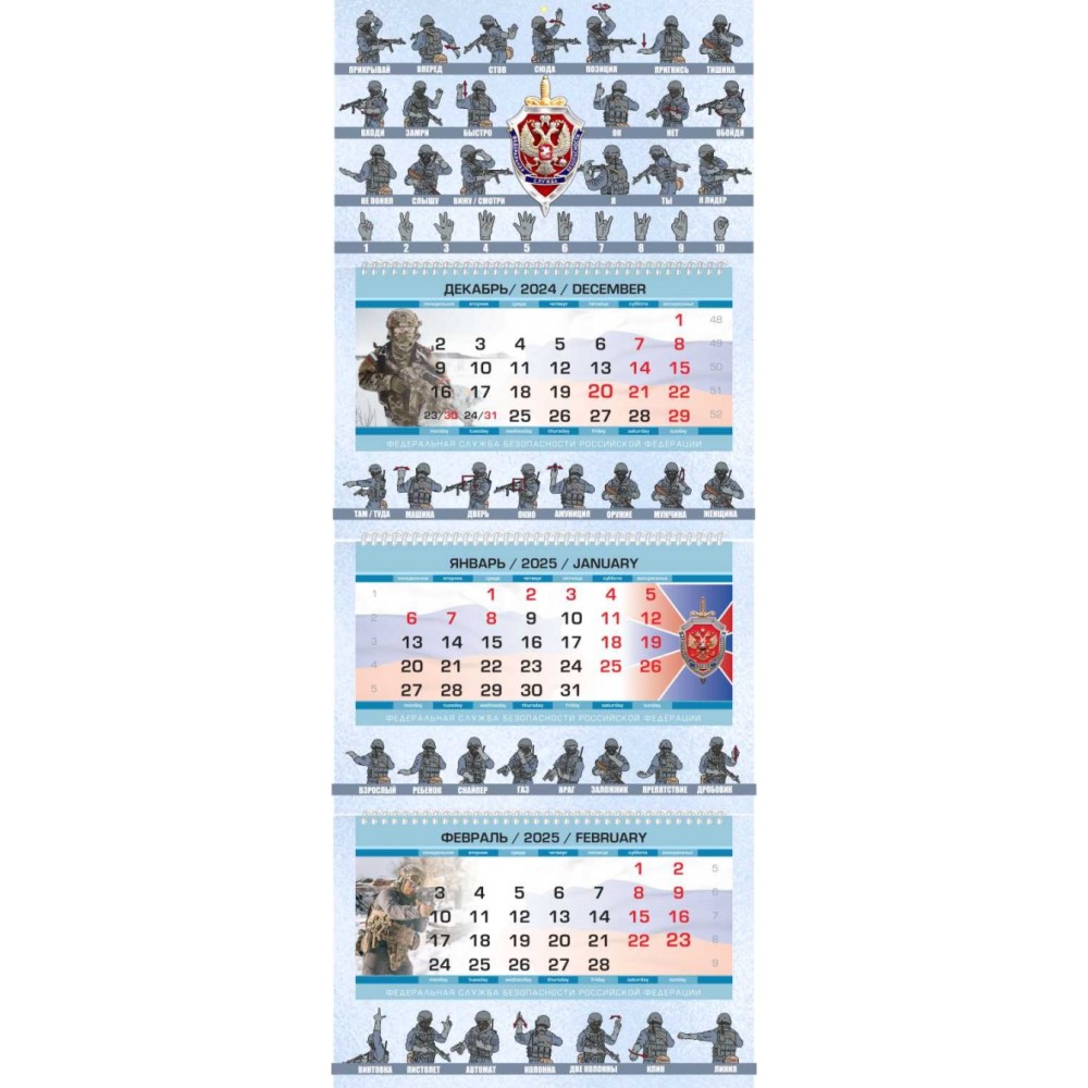 Настенный квартальный календарь ФСБ РФ "Язык жестов" квартальный трехблочный на 2025 год. Верхний постер и подложки на плотной бумаге с глянцевым покрытием.