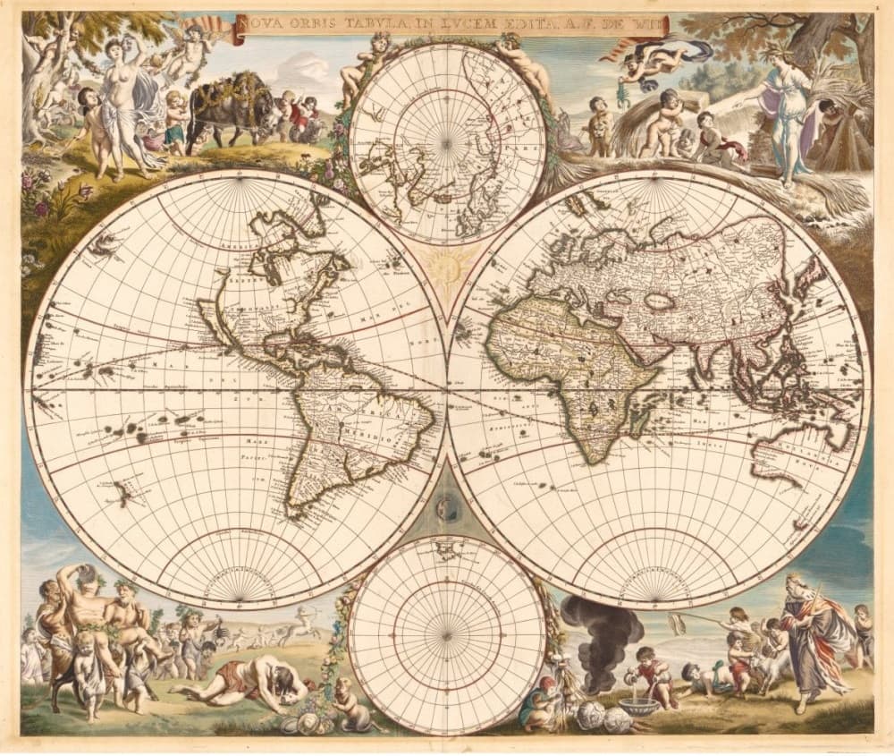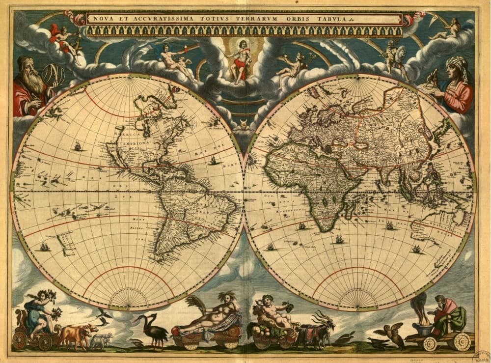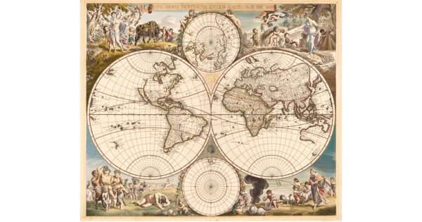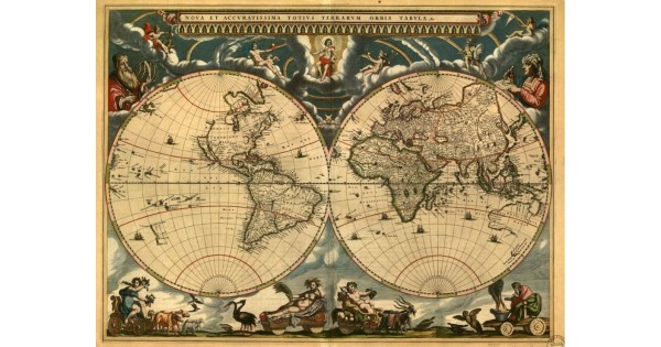На складе: 1 шт. Код товара: 1013 Древняя карта Мира 1664 года