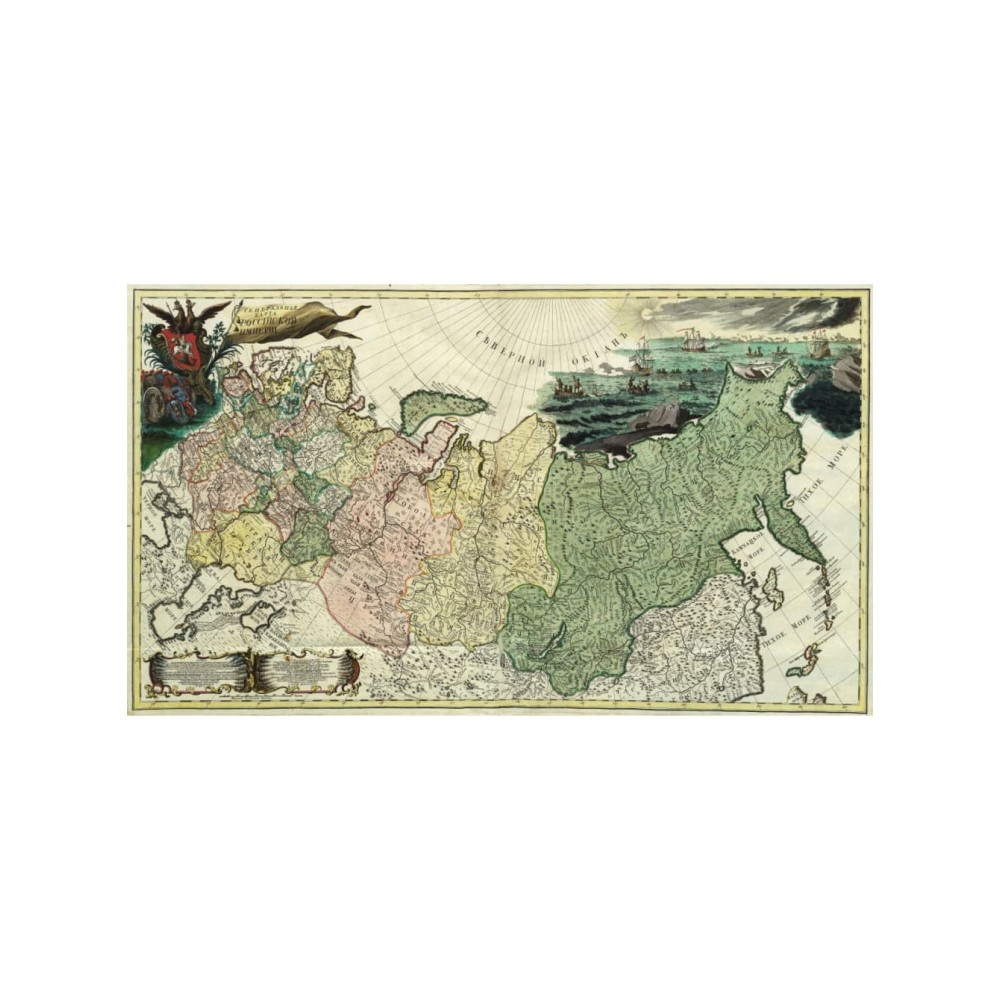 "Генеральная карта России 1745 год". Карта напечатана на плотной матовой бумаге 180 гр. Качество вполне хорошее, названия стран, городов и текст весь читаем.