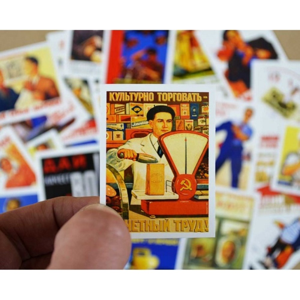 Набор из 32-х не повторяющихся наклеек (выпуск №2), созданный на базе плакатов СССР. Размер 45х60 мм. На обороте имеются надсечки, на основе, для легкого и удобного отклеивания. Качественная печать на мелованной полуглянцевой самоклеющейся бумаге. Стикеры прекрасно держатся на любой ровной поверхности: бумага, обложки, пластик, металл и т.д. Стикеры упакованы в белый конверт размером 125х125 мм или в евроконверт для отправки почтой России.