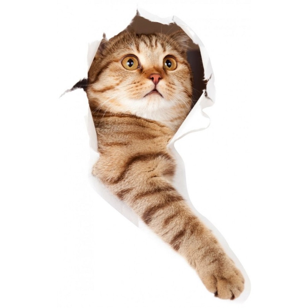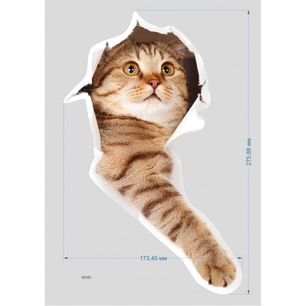 Наклейка 3Д с милым играющим котом для интерьера. Качественная печать (БЕЗ ЗАПАХА!) на матовой белой пленке. Наклейка расположена на подложке размером 215х310 мм, вырезана по контуру. Стикеры прекрасно держатся на любой ровной поверхности: дерево с покрытием, обложки, пластик, металл, керамика и т.д. Наклейка упакована в белый конверт размером С4 (324х229 мм). Изображение не смазывается и не стирается водой, но может быть поцарапано твердым или острым предметом.